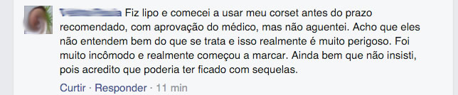 Se este é seu caso, espere o período, use a cinta pos operatória indicada pelo médico (aquela feia mesmo) e capriche nos tratamentos estéticos para que a fibrose não fique de vez no seu corpo. Não caia na besteira de usar um corset antes do tempo recomendado!